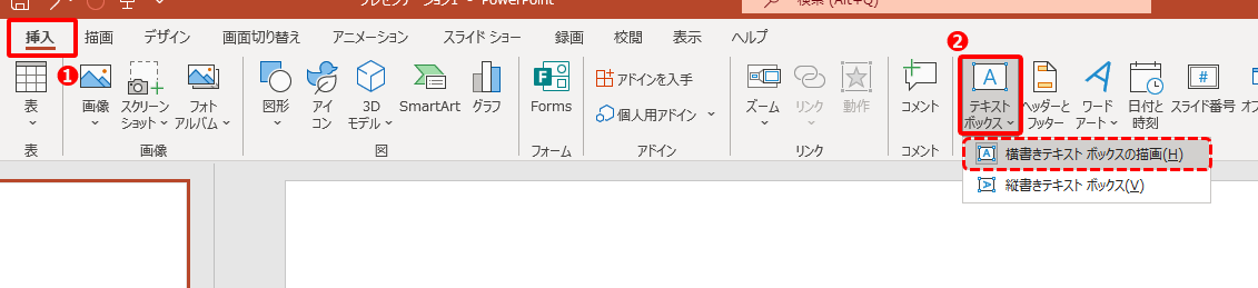 正直あまりお勧めはしませんので、[テキスト]と書かれたボックスに直接文字を入力してきましょう。